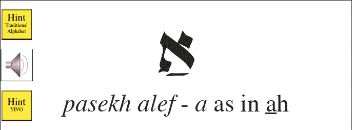 Just in time for my (and your) Yiddish classes to begin for the fall of 2013, I have completed a set of interactive Flashcards for learning to read Yiddish with Hebrew letters. They have hidden translation and meaning hints that show themselves when you move your cursor over the Hint buttons, and you can hear the letter and its sound or the word pronounced when you click the speaker button.