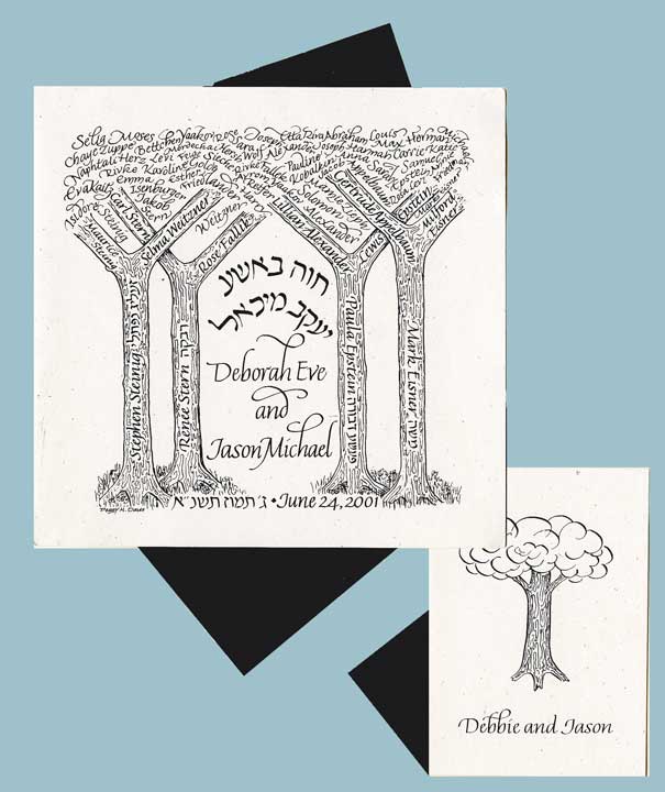 Family Tree invitation set, showing invitation cover and thank you folder cover.