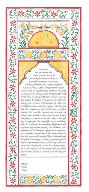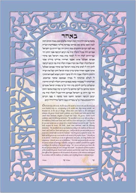 Size: The standard size of the Custom-Print Ketubah is 17" x 22;" you may order them in a smaller size. They are printed on archival quality rag paper with archival ink.